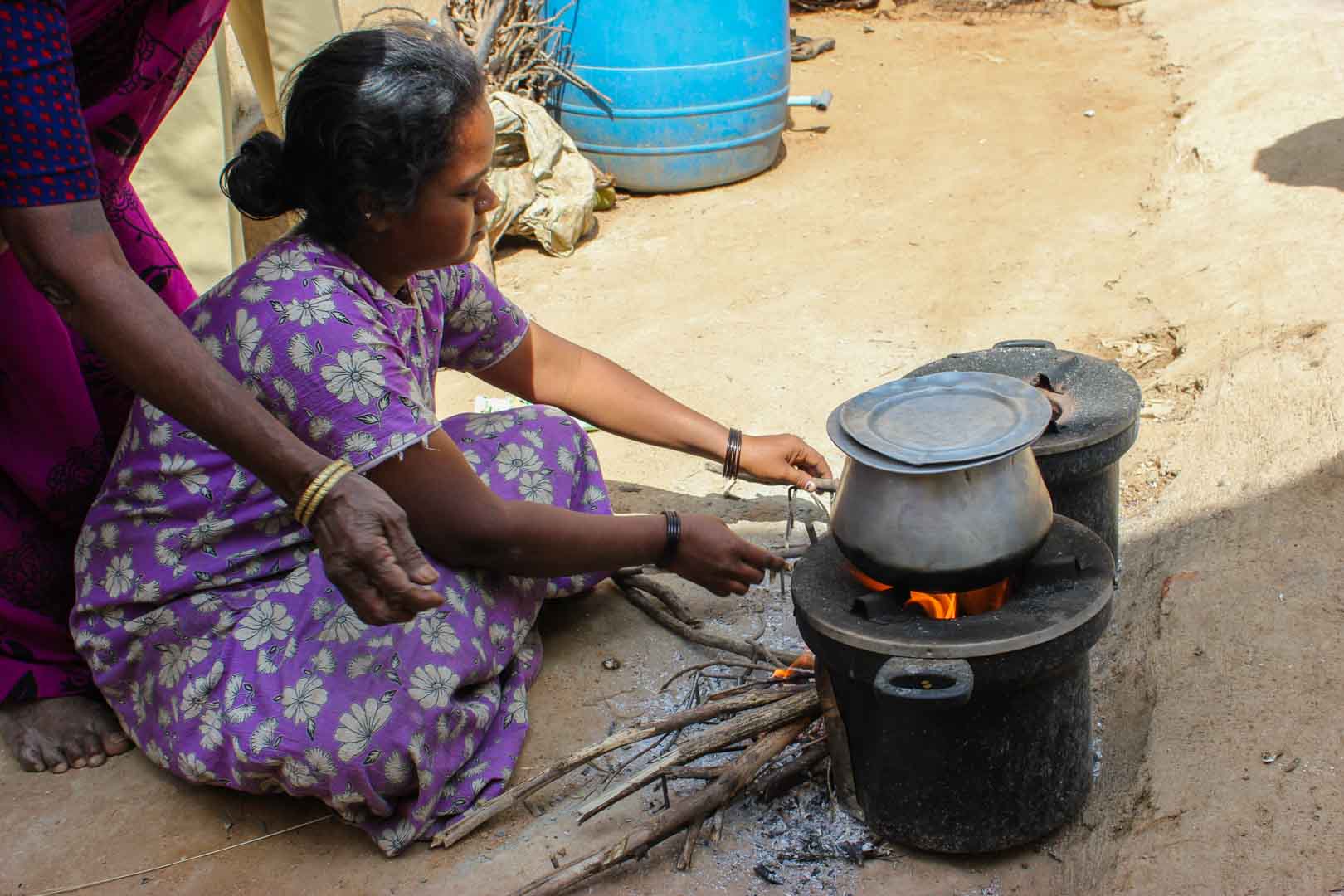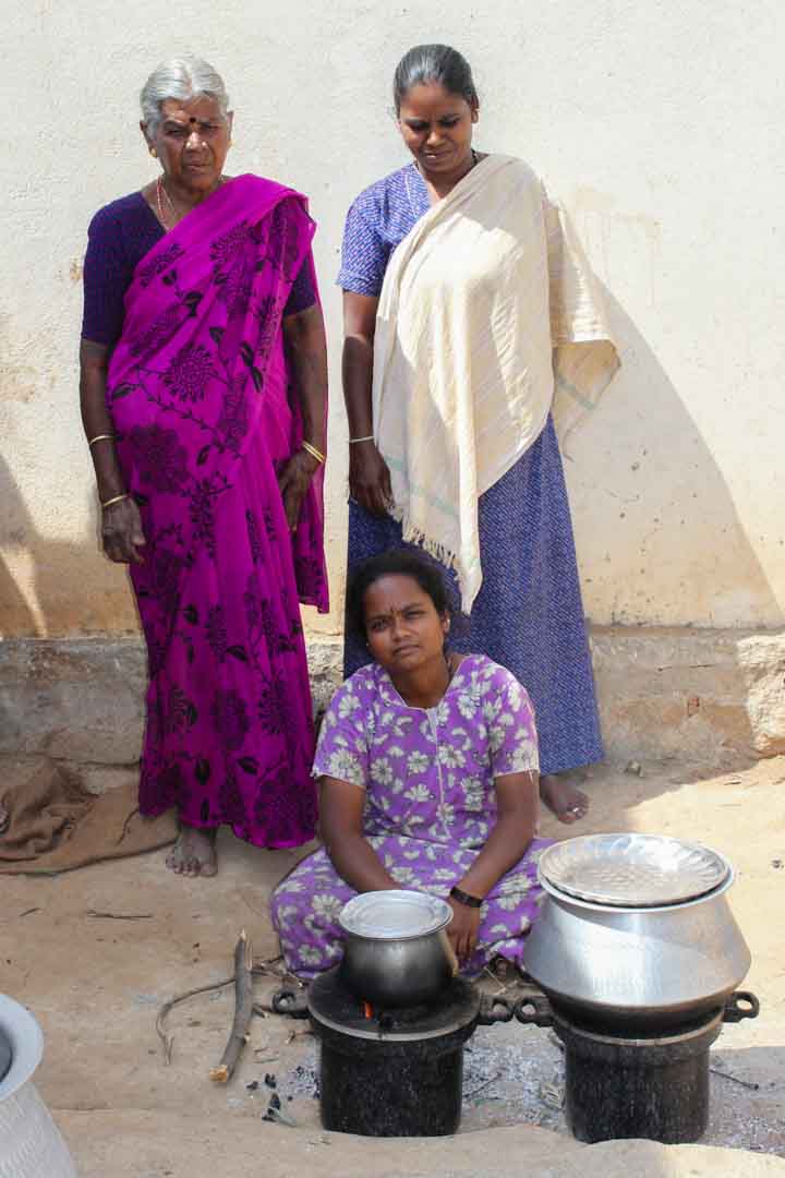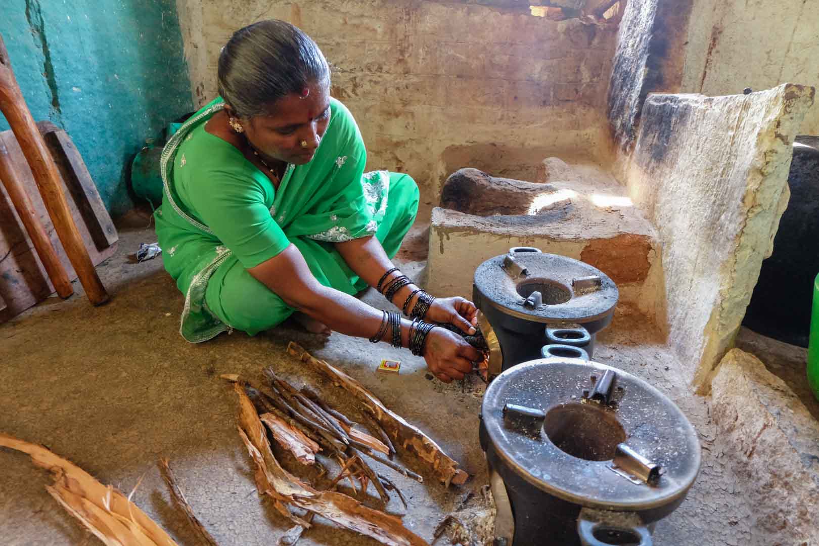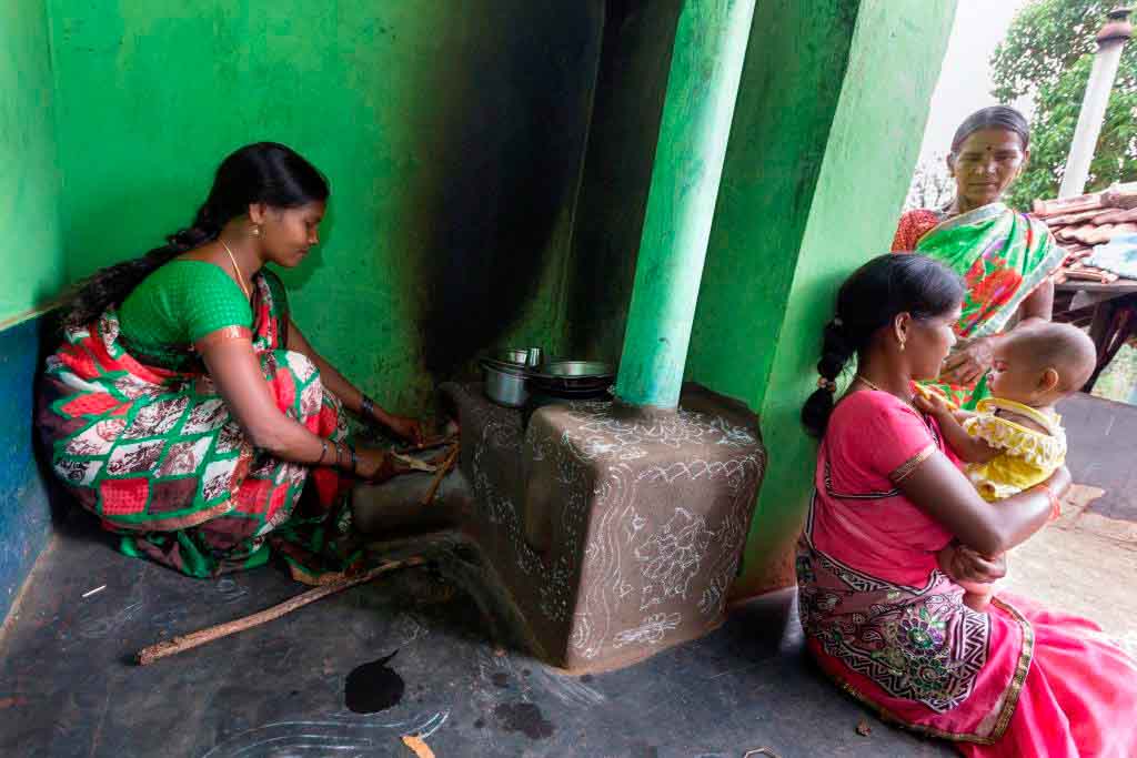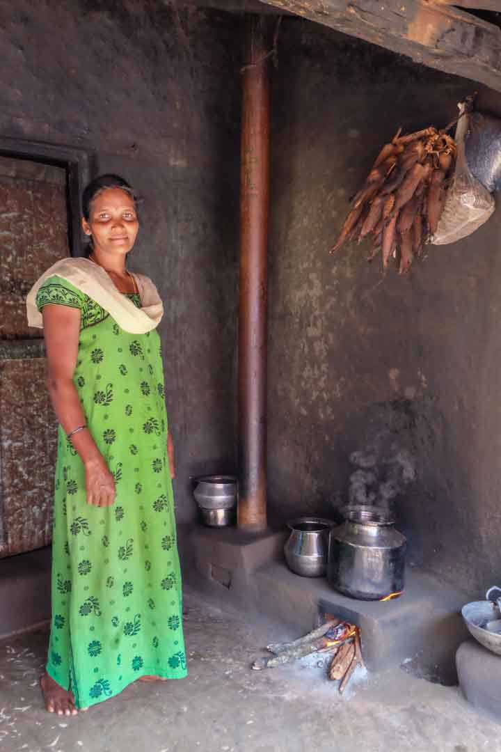 Klimaschutz und Armutsbekämpfung kennzeichnen die Projekte der Klima-Kollekte, die einen Beitrag zur Lebensverbesserung armer Haushalte leisten. Traditionell sind in Indien Frauen für den Haushalt und somit für die Zubereitung der Mahlzeiten zuständig. Für die Frauen in Visakhapatam wird das Kochen allerdings zunehmend beschwerlicher: Einerseits müssen sie lange Wanderungen auf sich nehmen, um Holz zu sammeln und andererseits sind die Frauen beim Kochen in den Hütten starkem Rauch ausgesetzt, der die Atemwege angreift und die Augen reizt. Deshalb fertigt die Partnerorganisation LAYA Ressource Centre 3.750 energiesparende Kochstellen aus Lehm in 109 Dörfern an. Diese verbrauchen 25 Prozent weniger Holz als traditionelle Öfen und können auch mit anderem Brennmaterial aus Biomasse beheizt werden.