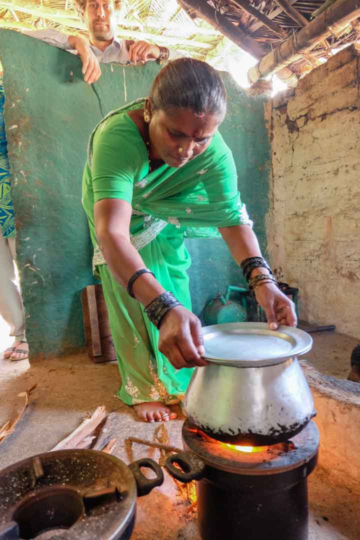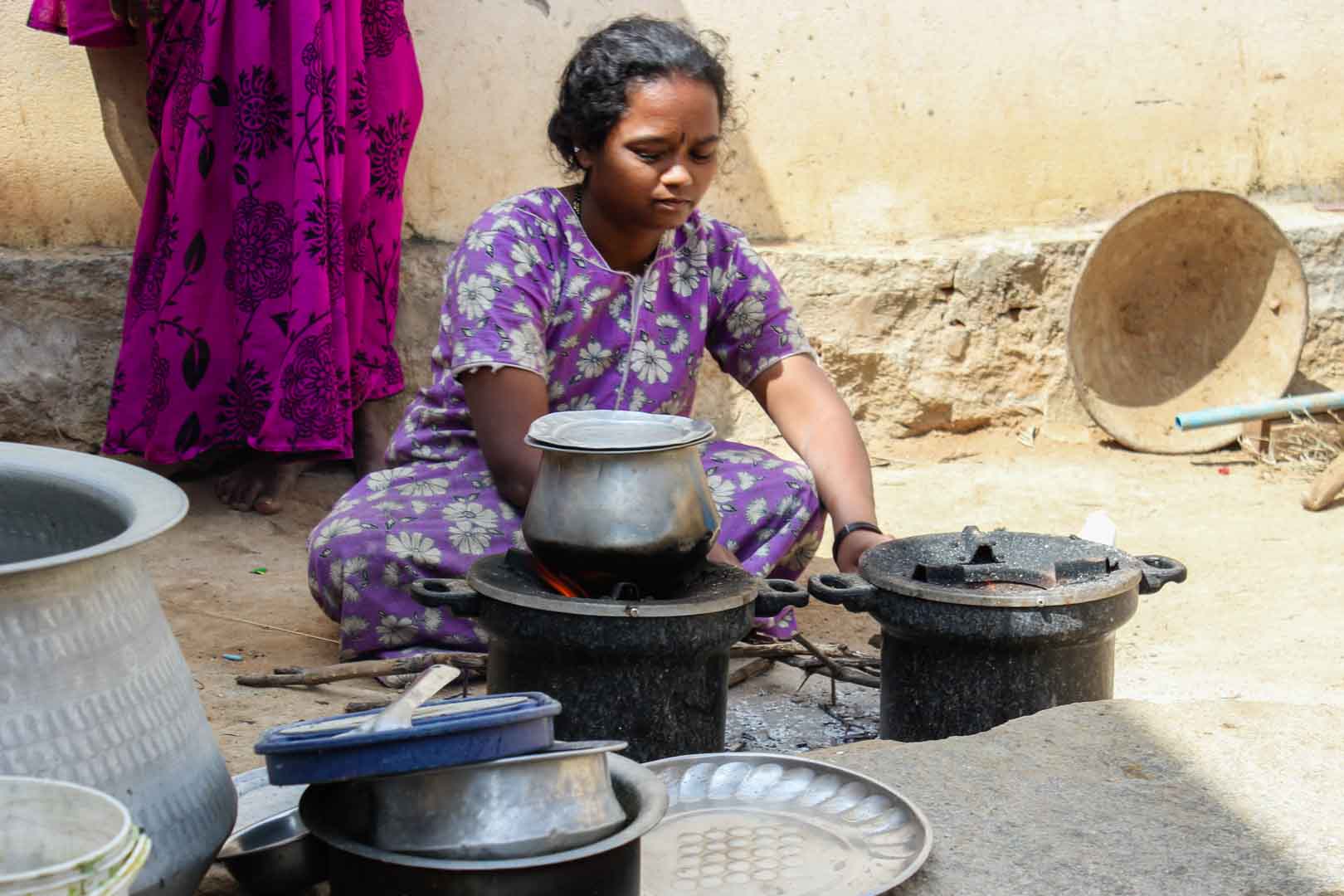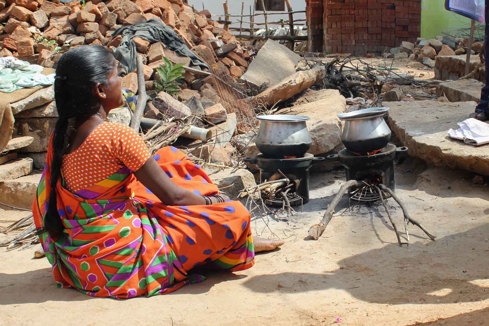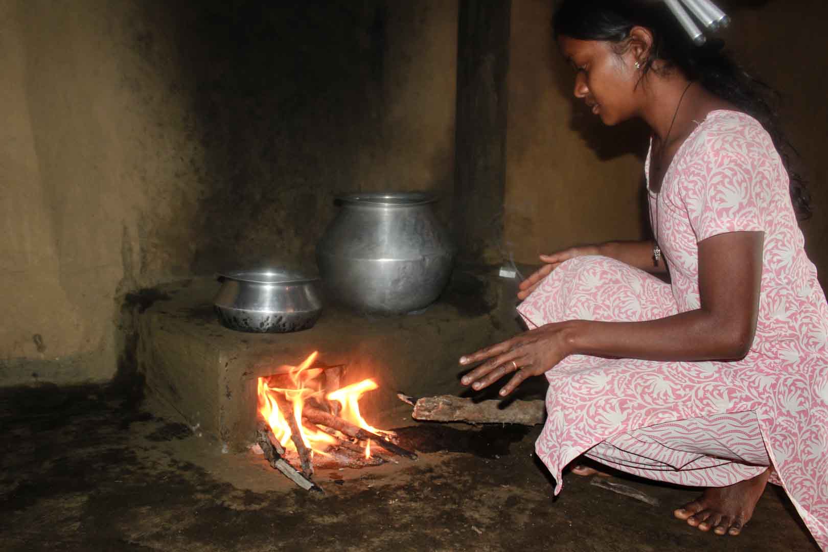 Klimaschutz und Armutsbekämpfung kennzeichnen die Projekte der Klima-Kollekte, die einen Beitrag zur Lebensverbesserung armer Haushalte leisten. Traditionell sind in Indien Frauen für den Haushalt und somit für die Zubereitung der Mahlzeiten zuständig. Für die Frauen in Visakhapatam wird das Kochen allerdings zunehmend beschwerlicher: Einerseits müssen sie lange Wanderungen auf sich nehmen, um Holz zu sammeln und andererseits sind die Frauen beim Kochen in den Hütten starkem Rauch ausgesetzt, der die Atemwege angreift und die Augen reizt. Deshalb fertigt die Partnerorganisation LAYA Ressource Centre 3.750 energiesparende Kochstellen aus Lehm in 109 Dörfern an. Diese verbrauchen 25 Prozent weniger Holz als traditionelle Öfen und können auch mit anderem Brennmaterial aus Biomasse beheizt werden.