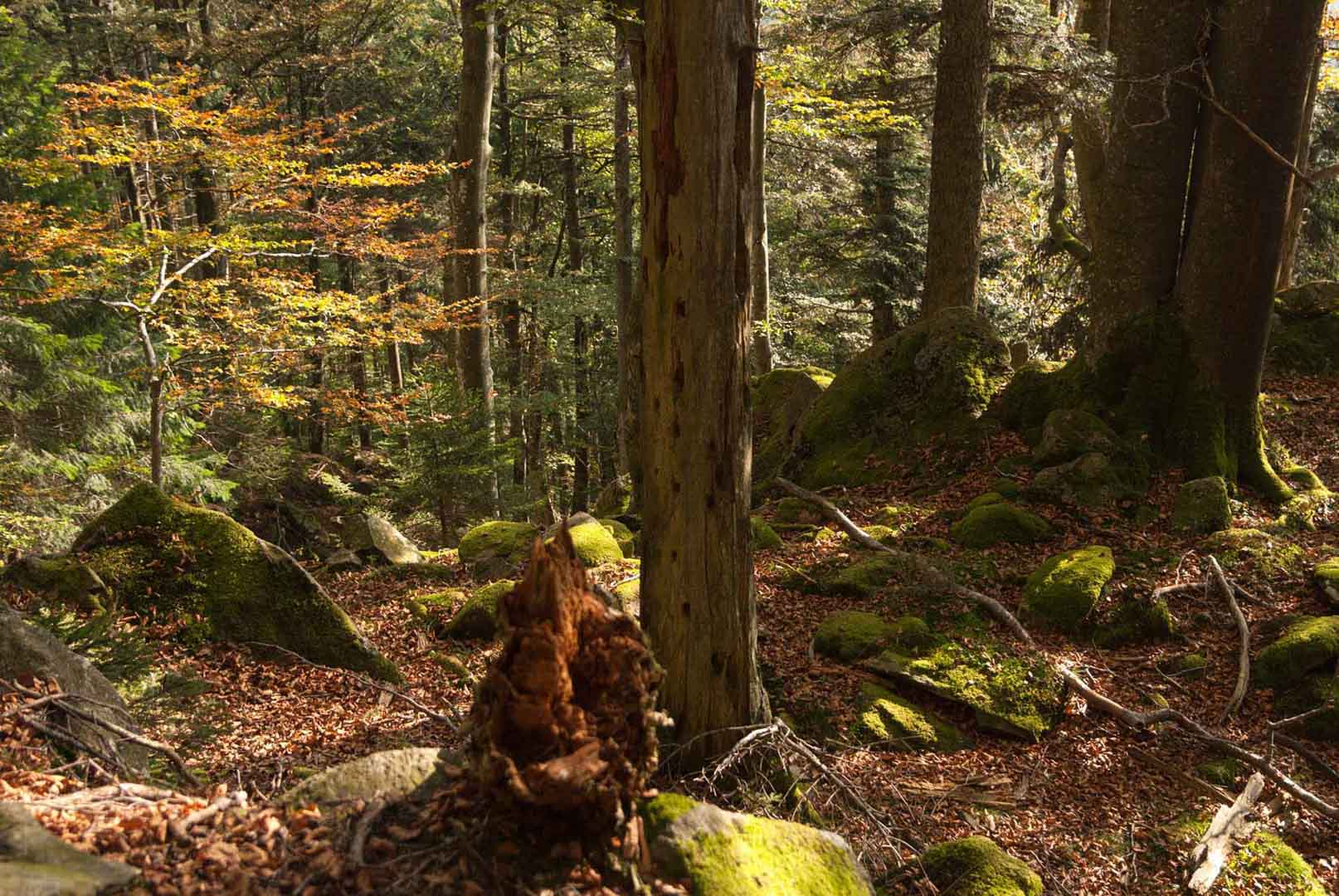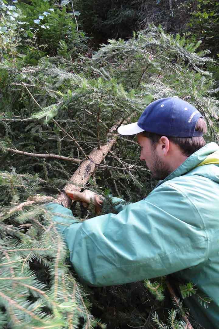Since 2001, the Mountain Forest Project has been active in the Schauinsland forest district of the Municipal Forestry Office of Freiburg. Forest management efforts focus on promoting deciduous trees and silver firs within the mixed mountain forest. An important and recurring measure is protecting young silver firs from browsing by chamois and roe deer through the installation of individual protective guards. Targeted habitat management interventions in the forest also improve living conditions for grouse species such as the capercaillie and hazel grouse.