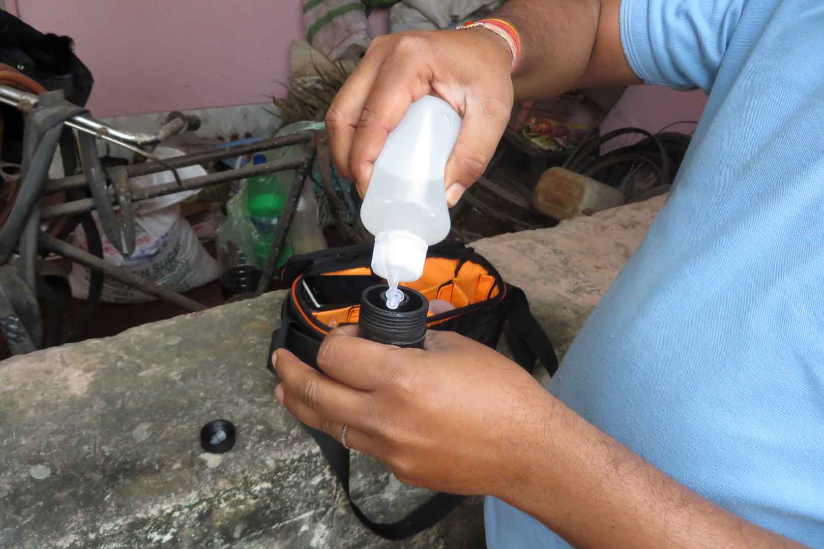 A simple and affordable supply of safe drinking water can do a lot here. That is why this project organises the chemical treatment of water using chlorine. The chloride solution is made on site, and the water is conveniently available in small village shops or delivered to people's homes.
