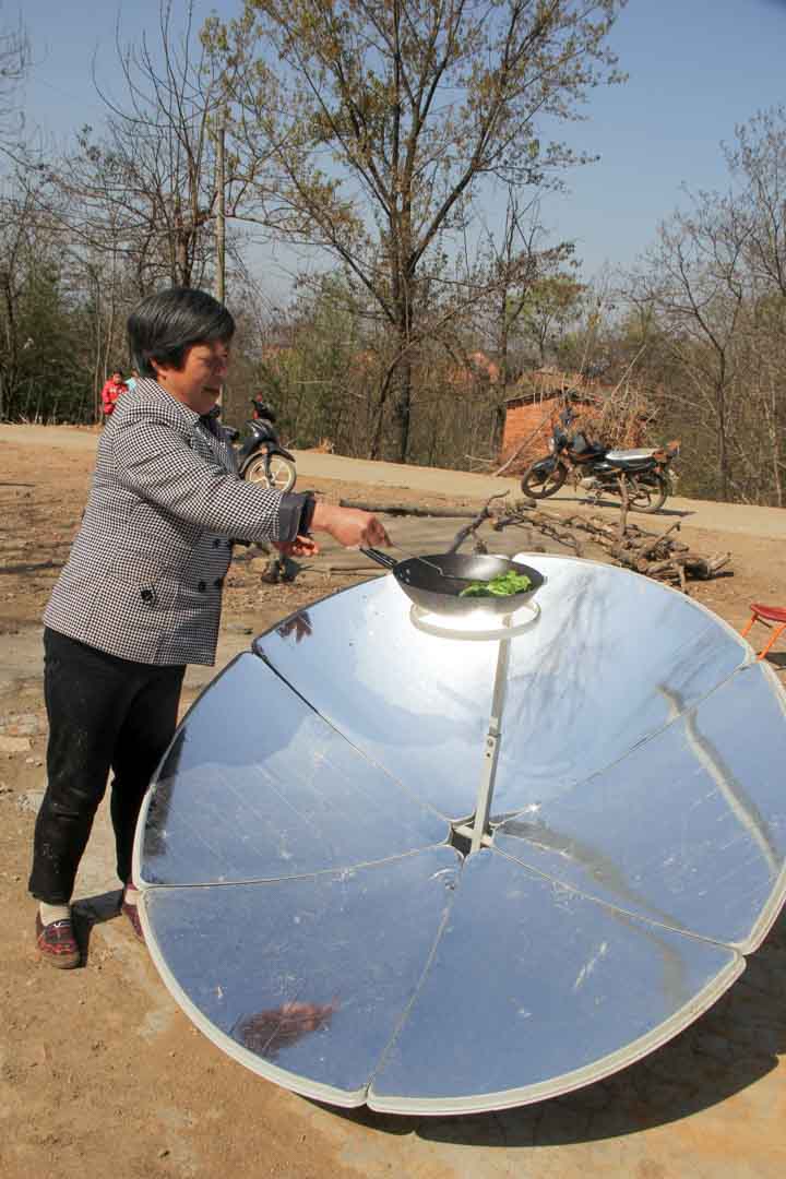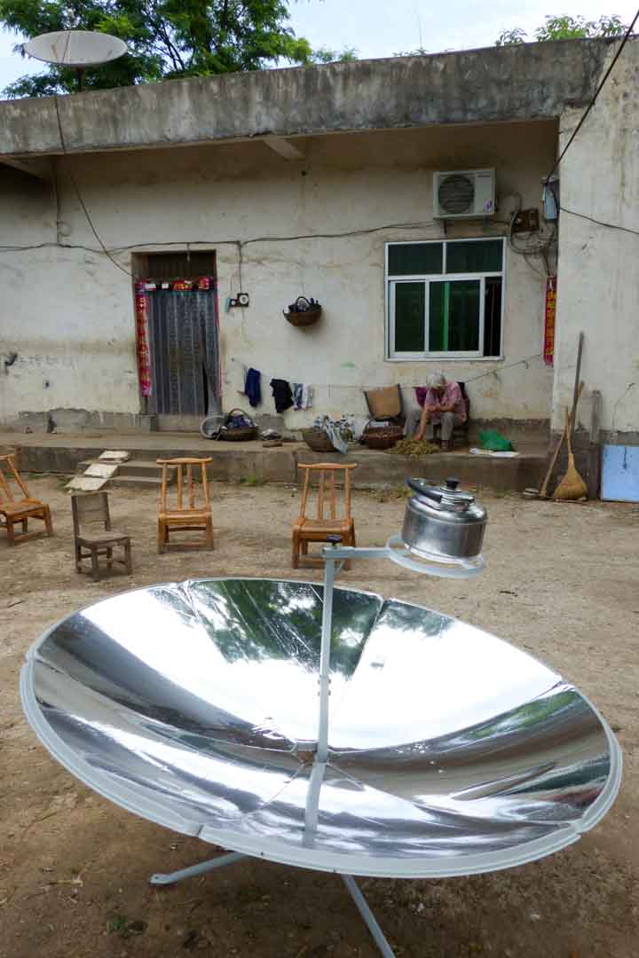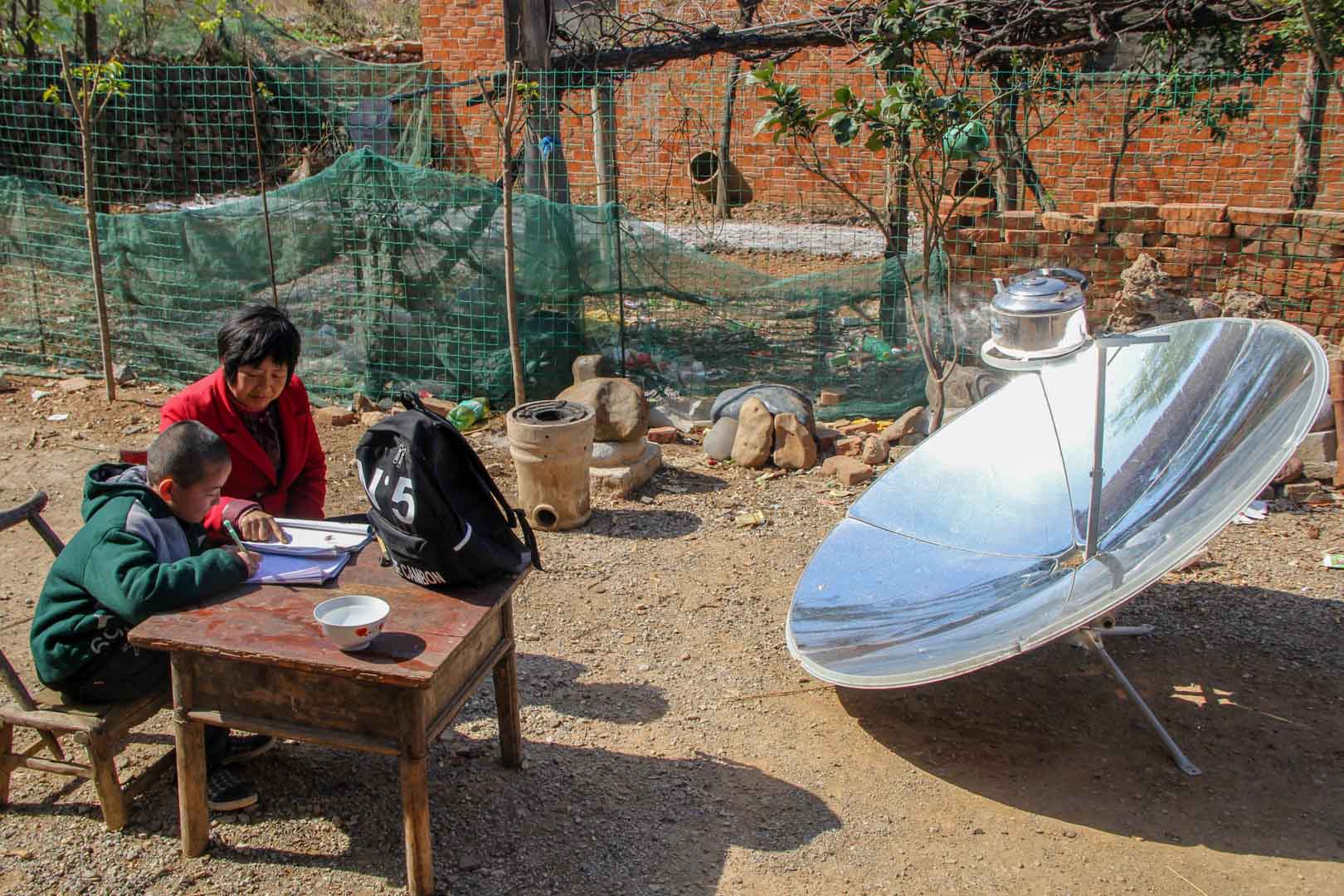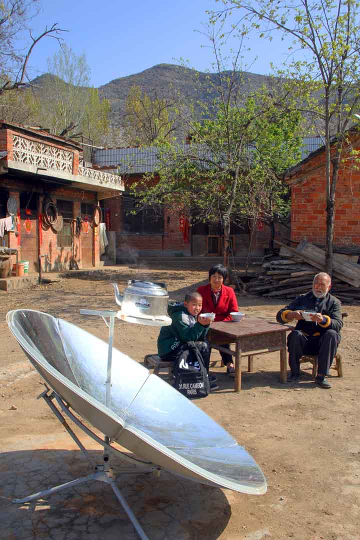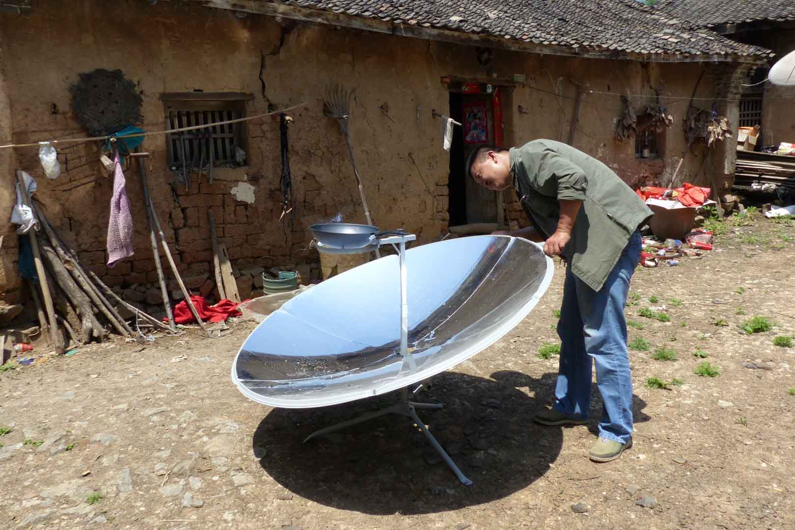 This project addresses these conditions by providing households with simple yet effective solar cookers. The devices operate using a parabolic mirror that concentrates sunlight directly onto the cooking pot, generating heat without the need for additional technology. Despite their simplicity, the benefits are substantial. Solar energy is freely available, clean and abundant in this region of China. As a result, indoor air pollution caused by smoke from coal stoves is significantly reduced.