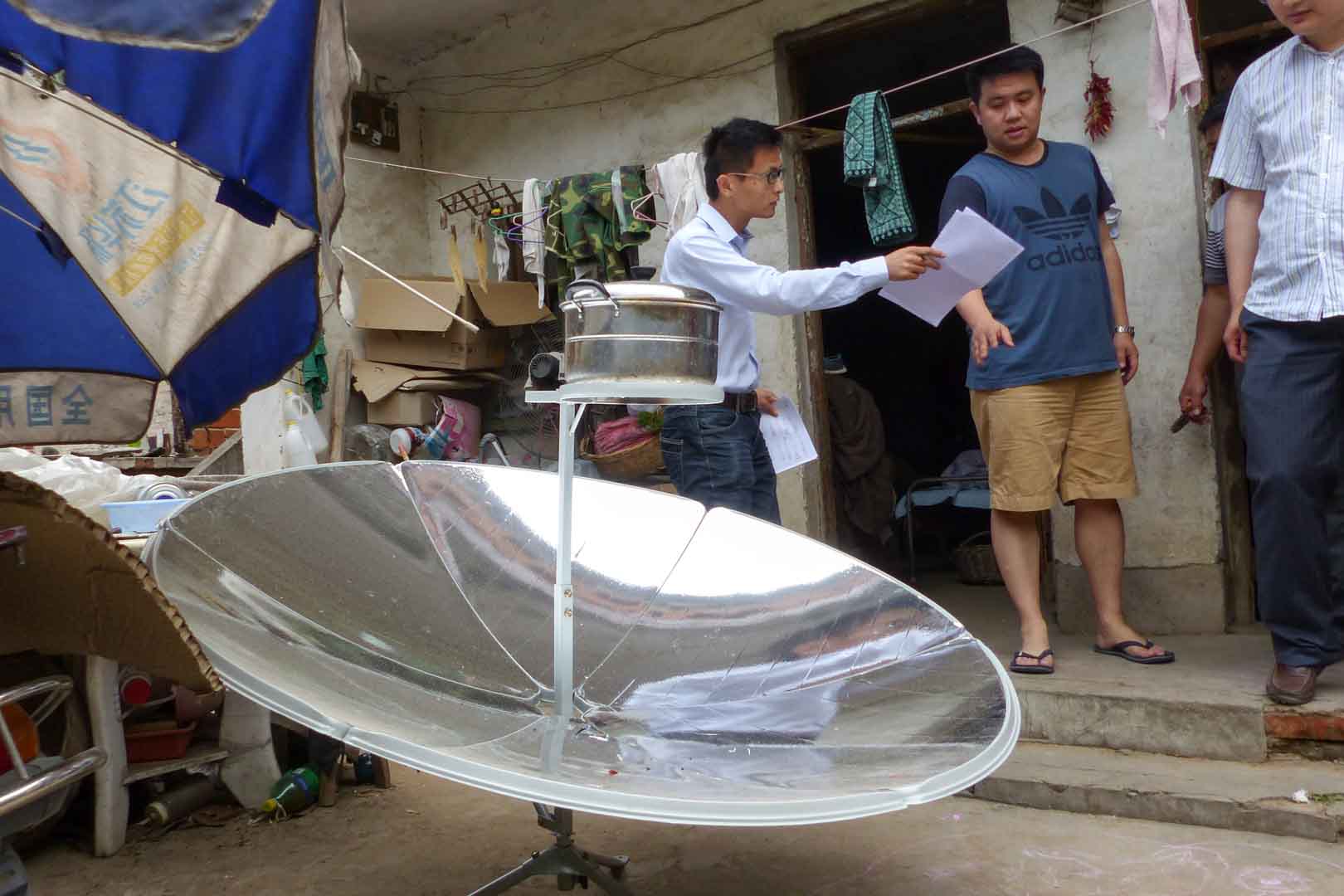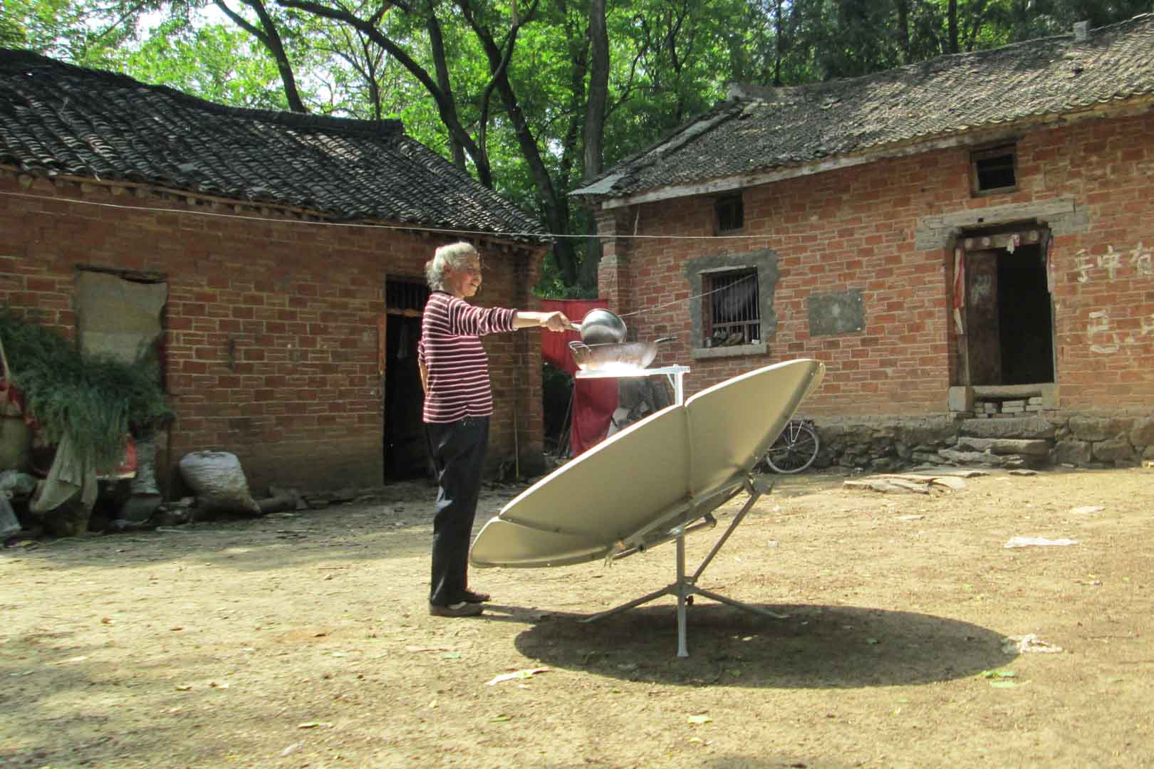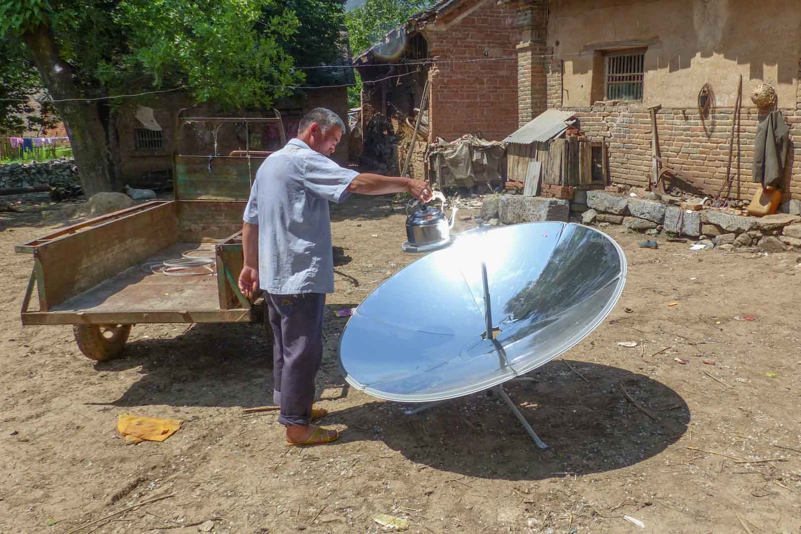 This project addresses these conditions by providing households with simple yet effective solar cookers. The devices operate using a parabolic mirror that concentrates sunlight directly onto the cooking pot, generating heat without the need for additional technology. Despite their simplicity, the benefits are substantial. Solar energy is freely available, clean and abundant in this region of China. As a result, indoor air pollution caused by smoke from coal stoves is significantly reduced.