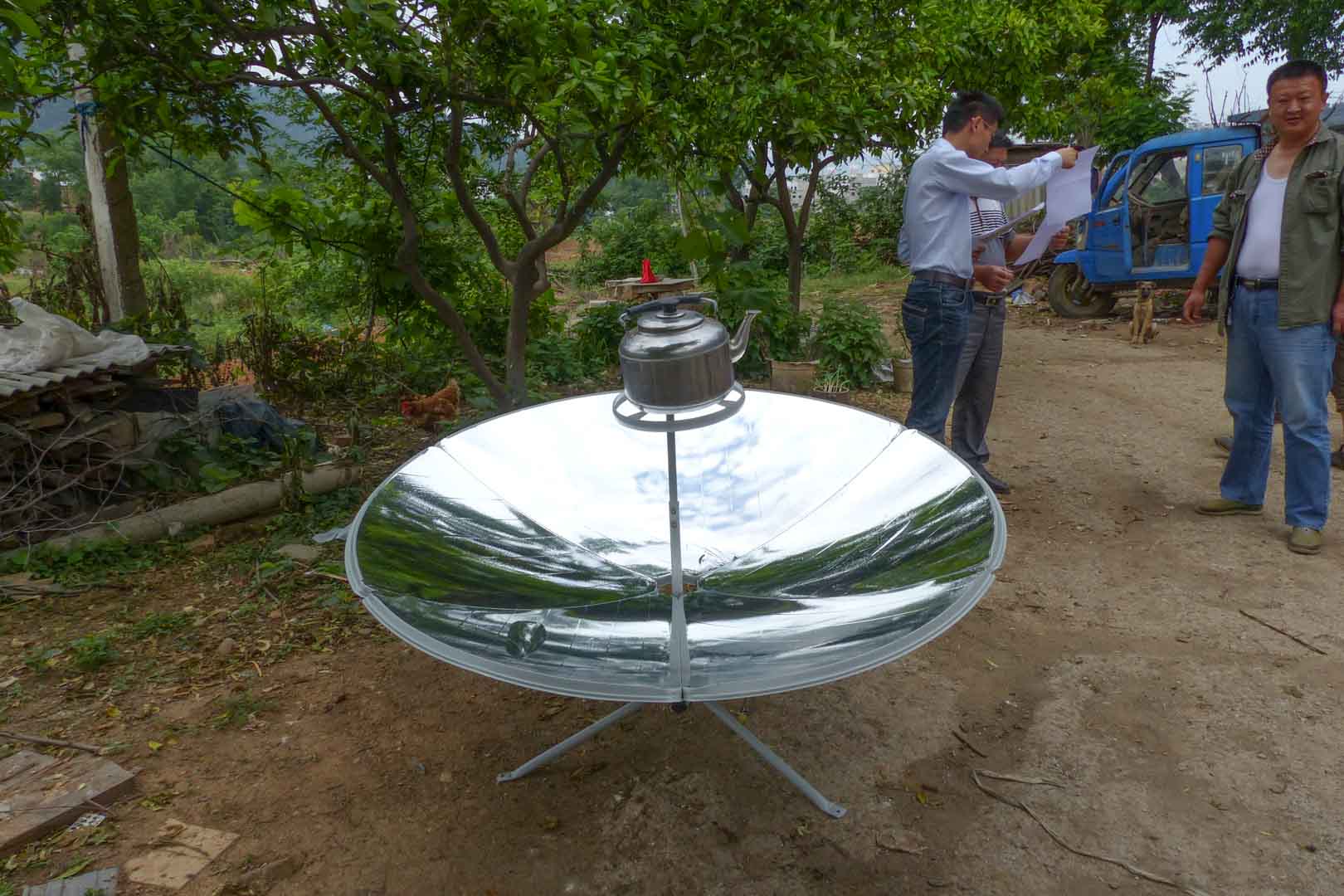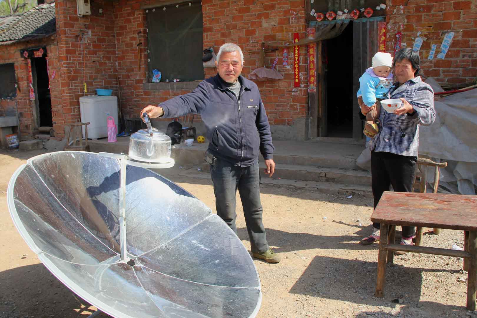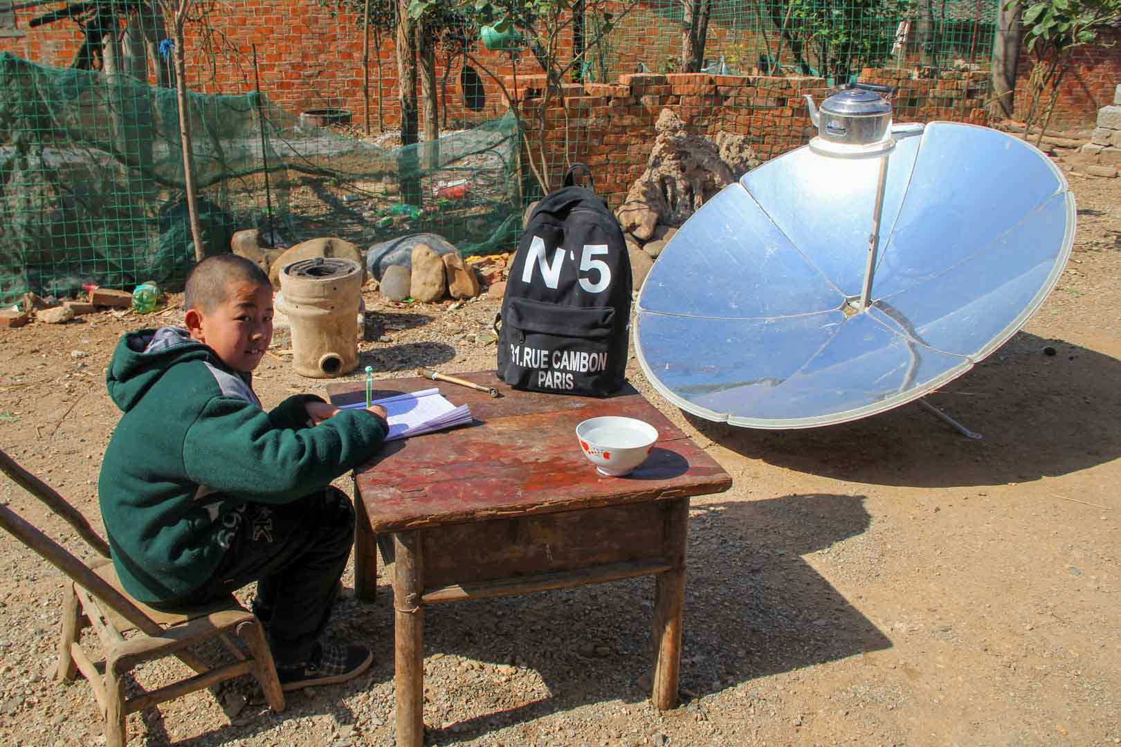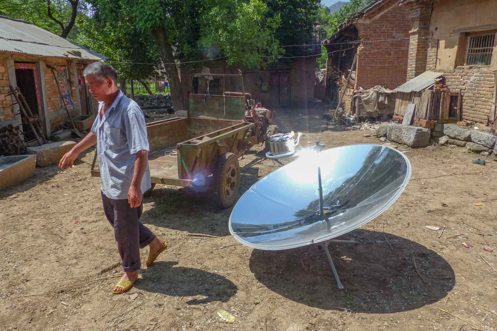 This project addresses these conditions by providing households with simple yet effective solar cookers. The devices operate using a parabolic mirror that concentrates sunlight directly onto the cooking pot, generating heat without the need for additional technology. Despite their simplicity, the benefits are substantial. Solar energy is freely available, clean and abundant in this region of China. As a result, indoor air pollution caused by smoke from coal stoves is significantly reduced.