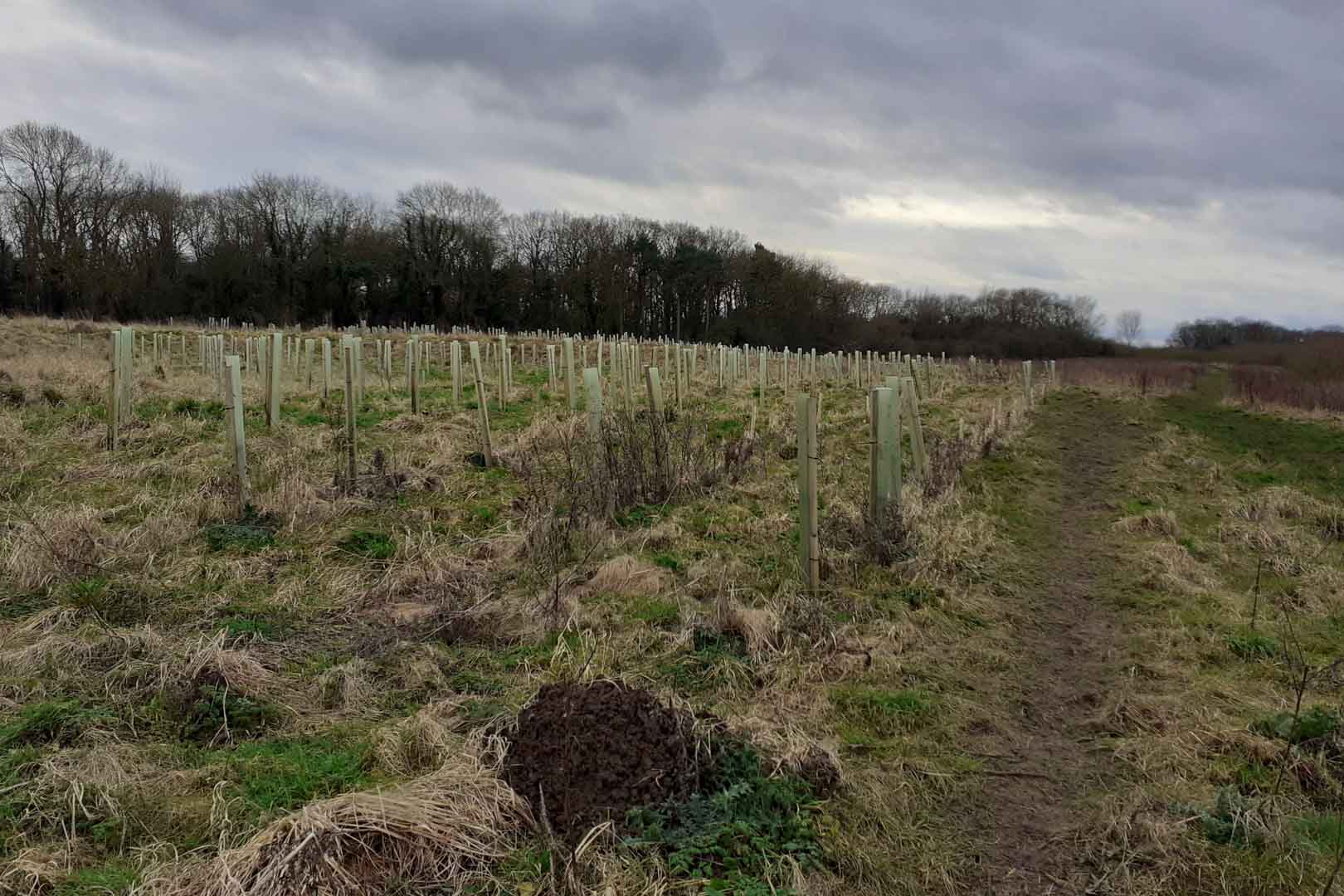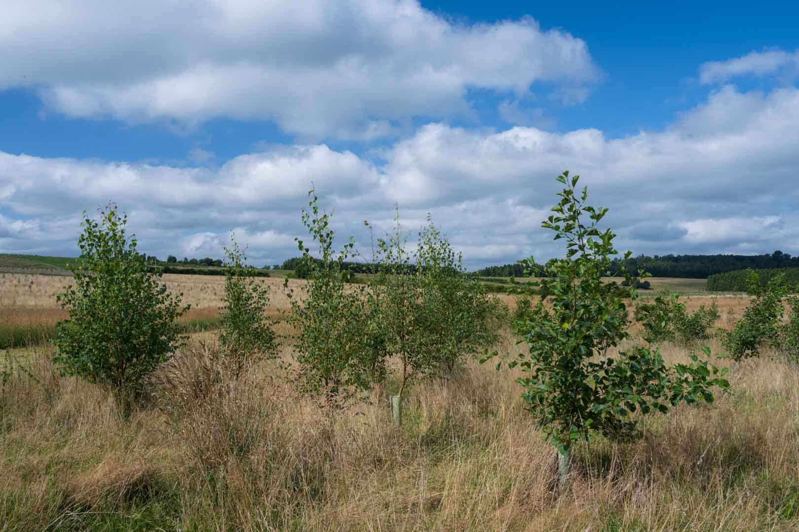 This project creates new woodlands and strengthens the resilience of existing forests against the impacts of climate change. Mixed-species forests are planted across the United Kingdom, including along the Scottish Borders as well as in Nottinghamshire, Durham, and Cumbria. Tree species include oak, spruce, hawthorn, cherry, Scots pine, beech, and birch. Over time, these trees store carbon, making an important contribution to climate action.