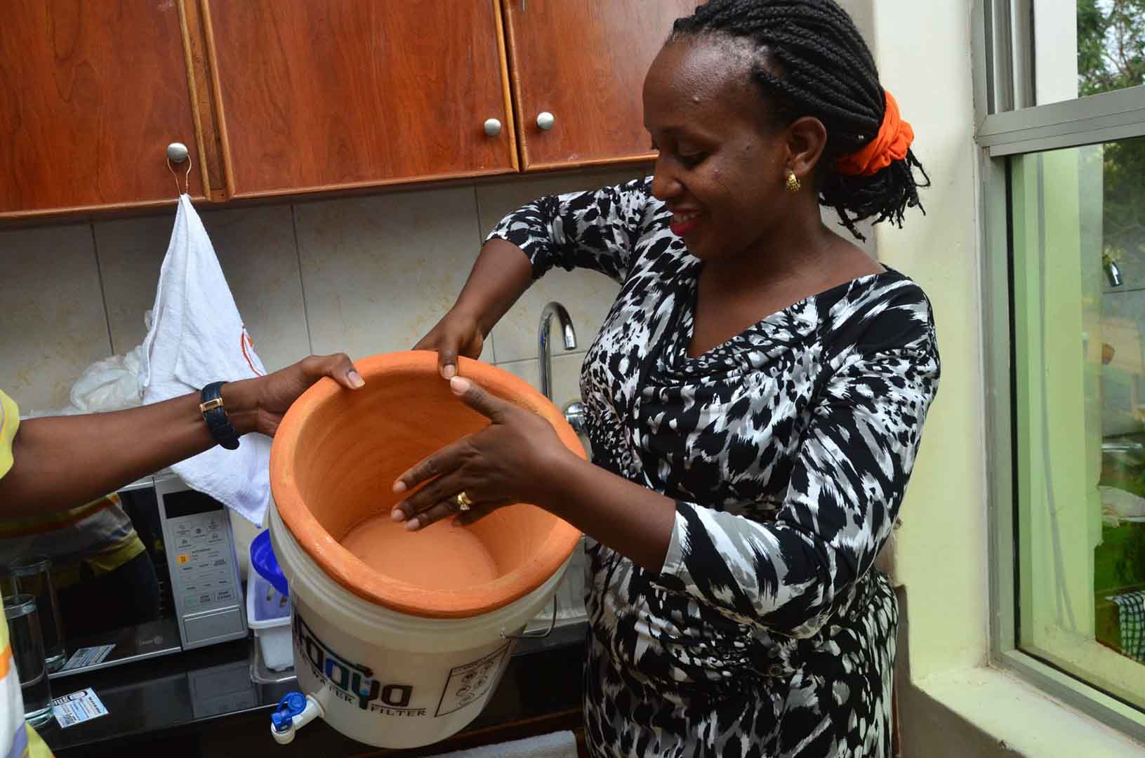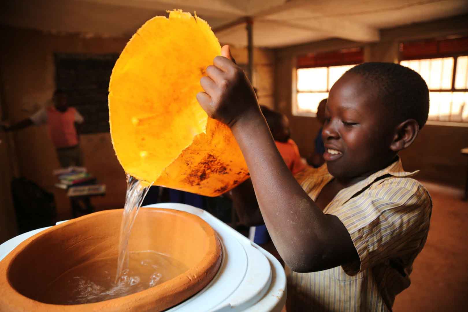 To help address these challenges, the Spouts project has developed an innovative business approach. It manufactures and distributes the so-called Purifaaya ceramic water filters to low income families, allowing them to purify and disinfect drinking water at home. The filters eliminate 99.9 percent of bacteria and can hold 20 liters of water. They are an affordable, effective, sustainable and easy to use solution for providing safe water. One filter costs 25 USD and lasts up to 5 years. A specific XL model has been created and is used at schools and in refugee. The project aims to reach 5 million Ugandans, or 14 percent of the population, by 2025.