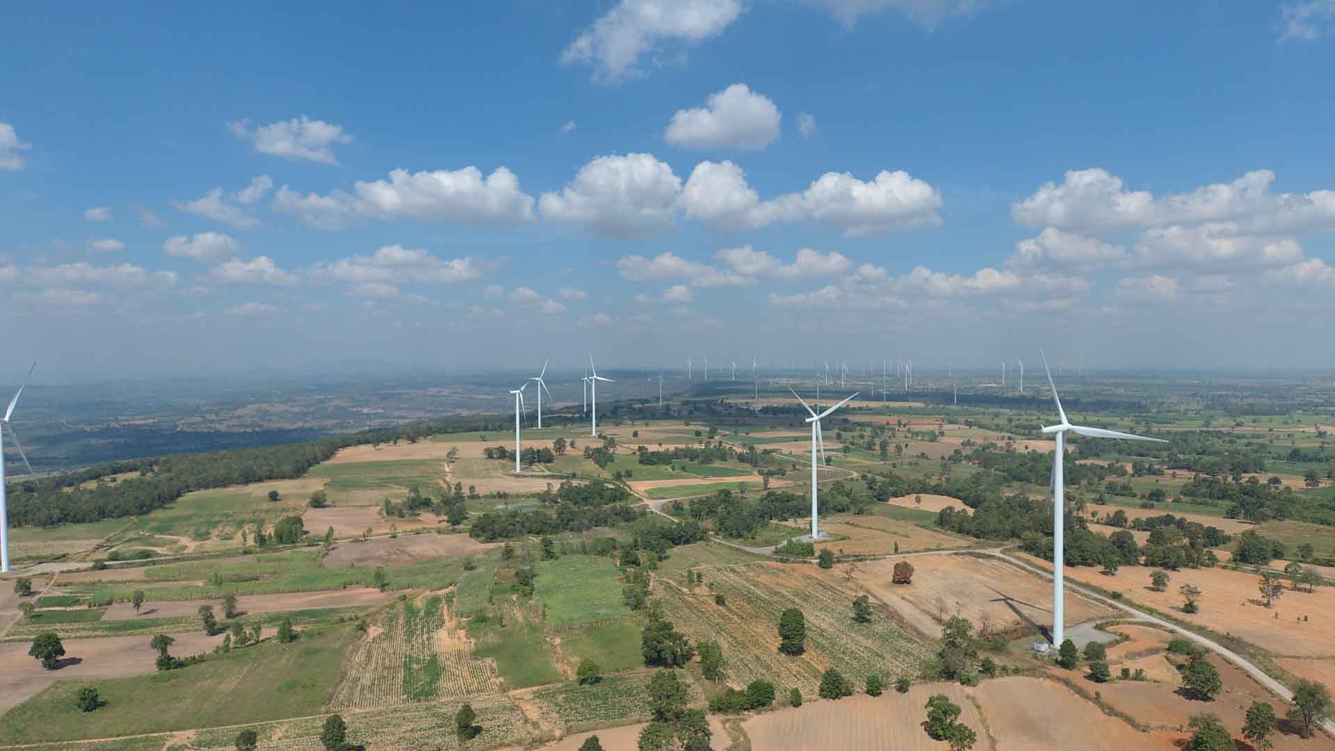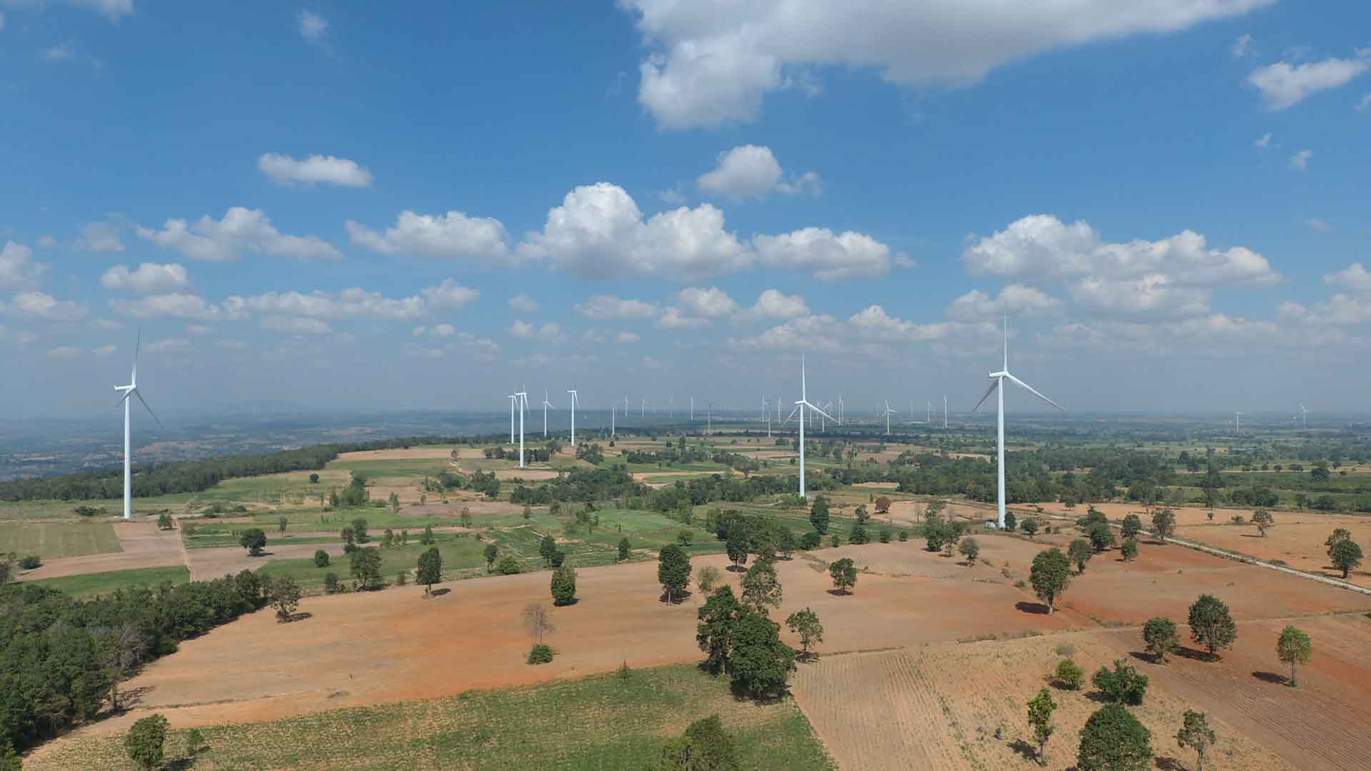 This is where the wind power project comes in: In the rural province of Nakhon Ratchasima, 45 wind turbines, each with a capacity of 2.3 MW, feed renewable electricity into the national grid. With a total installed capacity of 103.5 MW and an annual output of around 230 GWh, the project saves approximately 139,030 tons of CO₂ every year.