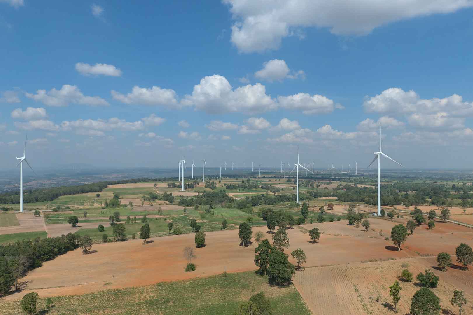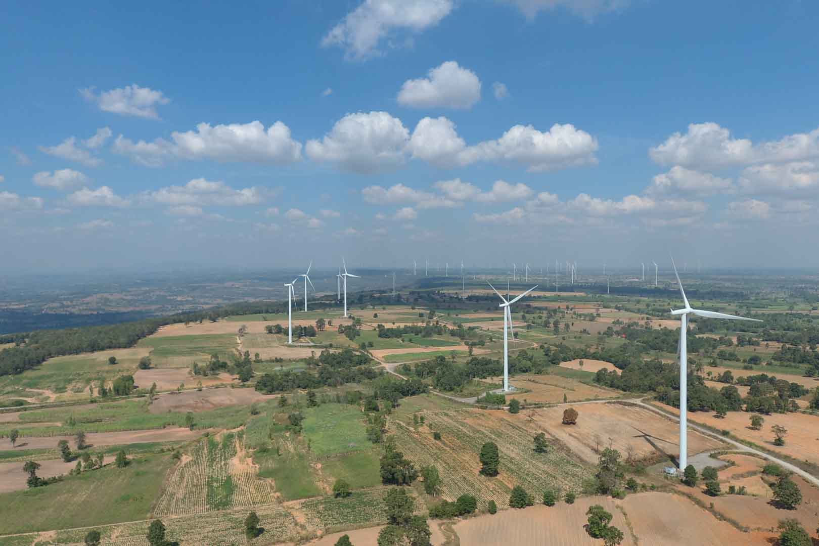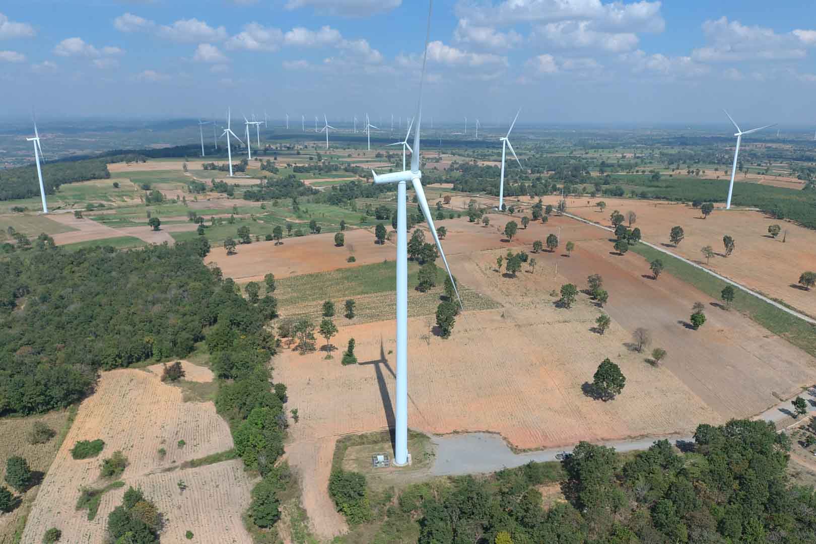 This project in rural Thailand reduces carbon emissions by supplying clean energy from wind power to the national grid. It contributes to increasing the share of renewable energies in the country and improves energy security. The wind farm is located in the province of Nakhon Ratchasima in the northeast of Thailand. It comprises 45 wind turbine generators with a total installed capacity of 103.5 MW. The project is expected to generate an average of 219.3 GWh electricity per year supplying Thailand's national grid.