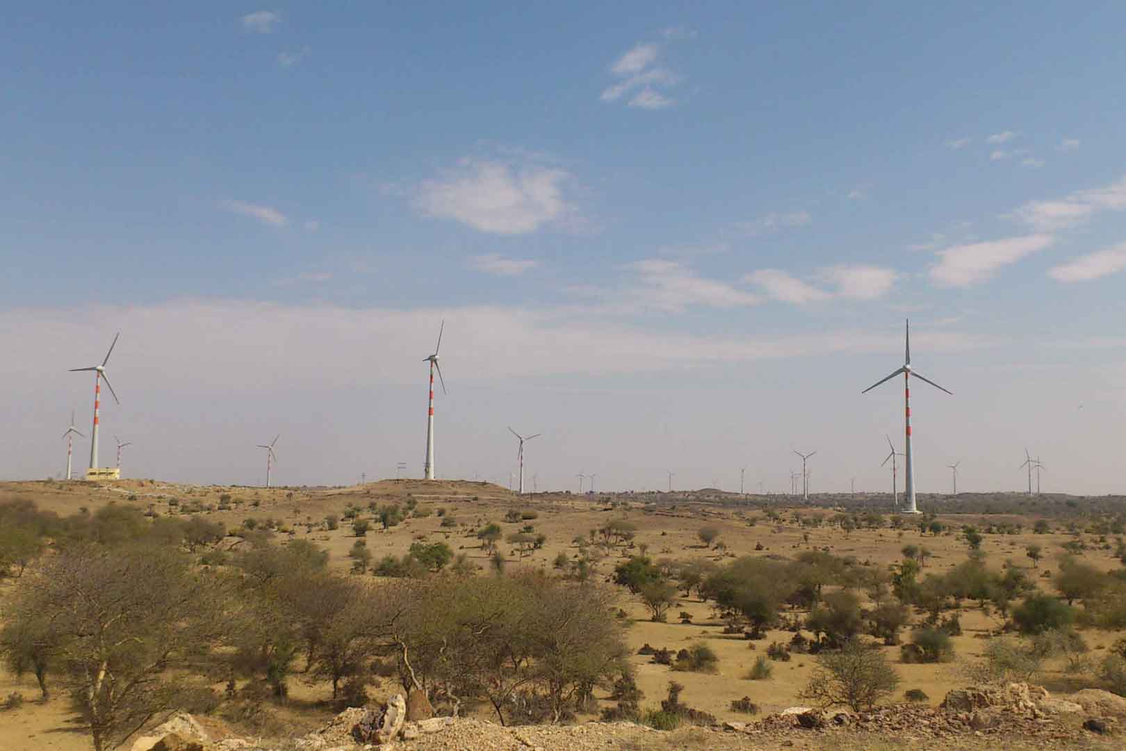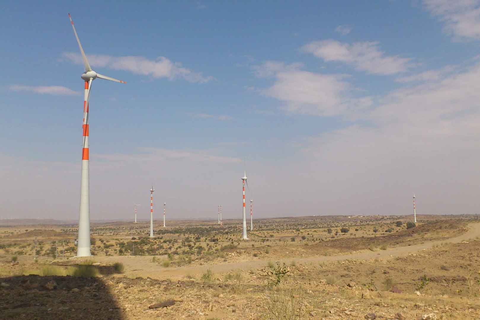 Der in der Wüste Indiens herrschende Wind wird ebenfalls für Energie aus erneuerbaren Energien genutzt. Das Salodi Windkraftprojekt versorgt hier mit 37 Windturbinen und einer Gesamtleistung von 29,6 MW seit 2012 das regionale Stromnetz (climatepartner.com/1302).