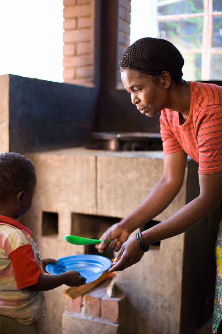 Das Projekt in Malawi unterstützt durch saubere Kochöfen Menschen und Klima. Diese bieten eine bessere Energieeffizienz und verbrauchen weniger Holz. Dadurch wird Rauch beim Kochen verringert und CO2-Emissionen eingespart (climatepartner.com/1115).